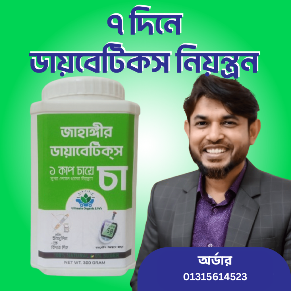 জাহাঙ্গীর ডায়াবেটিস চা– প্রাকৃতিক উপায়ে ডায়াবেটিস নিয়ন্ত্রণ করুন! অর্জুন, জাম বীজ, সজিনা পাতা, মেহেদি পাতা, ডুমুরসহ বহু ভেষজ উপাদানে সমৃদ্ধ, যা দীর্ঘ গবেষণার মাধ্যমে তৈরি। কোনো পার্শ্বপ্রতিক্রিয়া নেই!